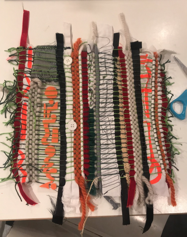 Me and Tian combined our patterns to make a larger one which we would then both work from, I took certain elements of the pattern like colour/shape/texture and weaved it with various colours to create a sample which I thought I may be able to intertwine with Tian’s work.